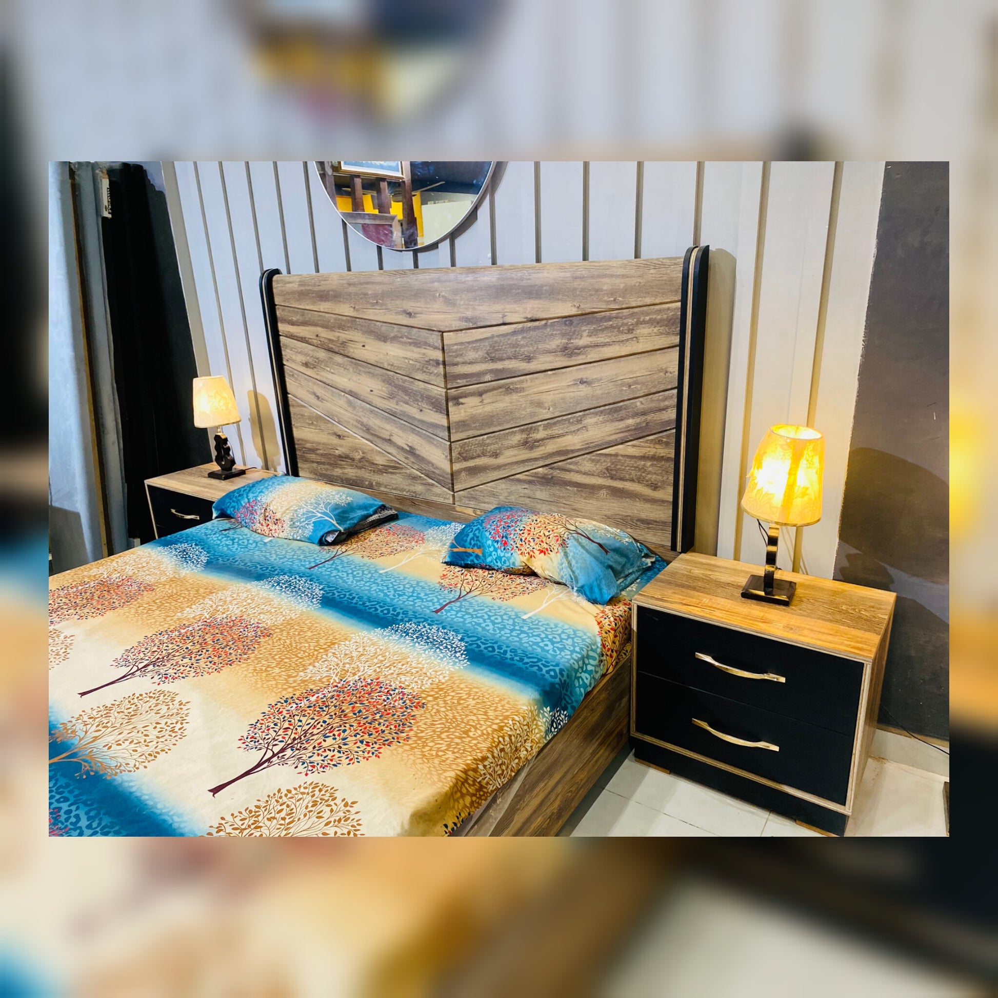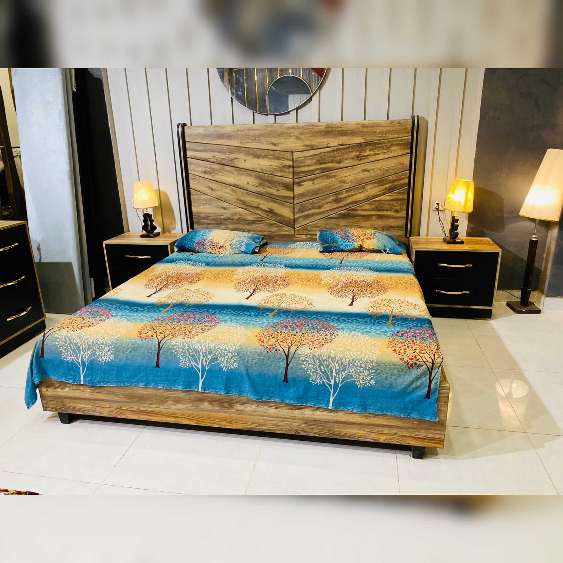 Add sophistication to your space with the Oakwood Elegance Bed. Its warm wooden finish, chevron-patterned headboard, and sleek black frame create a timeless modern look. Designed for both comfort and style — a true centerpiece for any luxury bedroom.